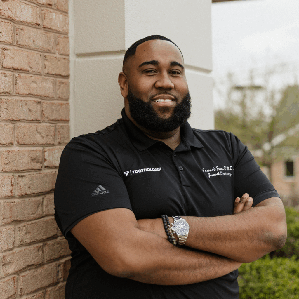 Born and raised in Radcliff, Kentucky, Dr. Jason Ford is committed to delivering top-tier dental care right to his own community. As the warm and welcoming face behind Toothologie – A Smile Studio, he specializes in general, restorative, and cosmetic dentistry, ranging from routine cleanings and emergency care to high-tech solutions like porcelain veneers, clear aligners, dental implants, and sedation dentistry.